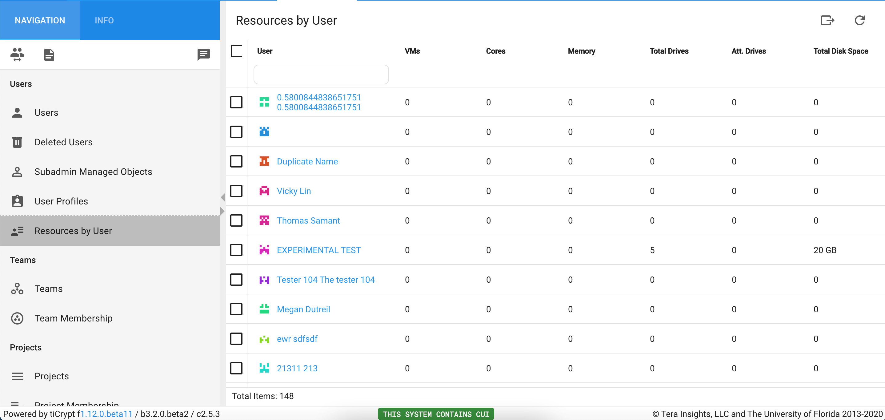 Users can view how much VM memory, VM drive size, and vault storage a user has used.