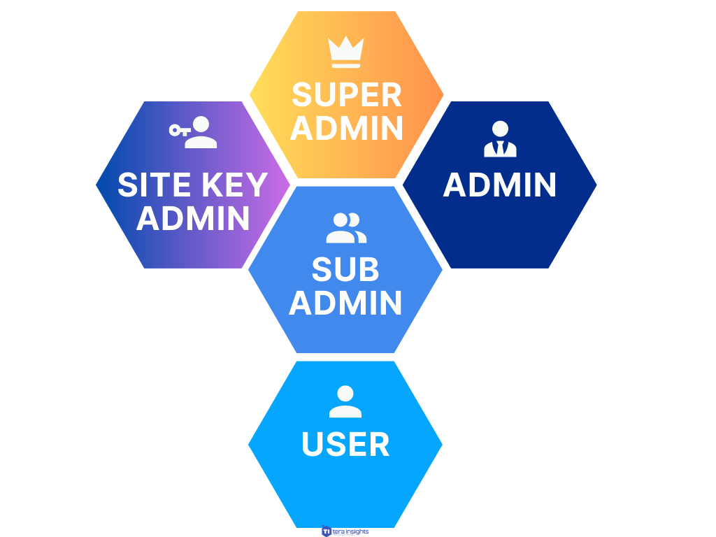 Super-admins have system responsibilities while sub-admins have team responsibilities.