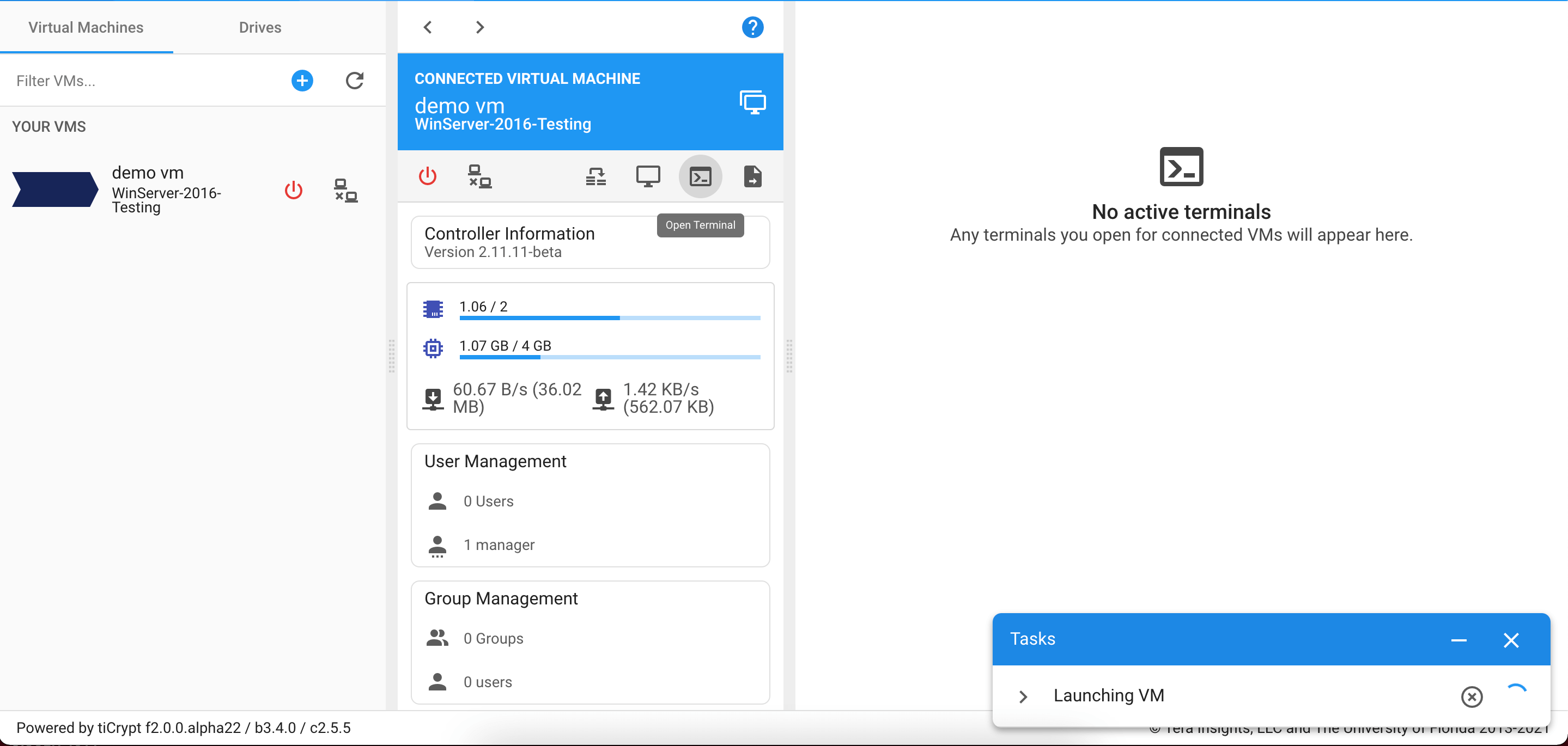 | Open Terminal | A user can open the virtual machine terminal. |