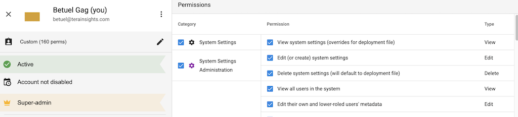 Overall, the permissions allow you to view, edit, create, and delete various tiCrypt objects.